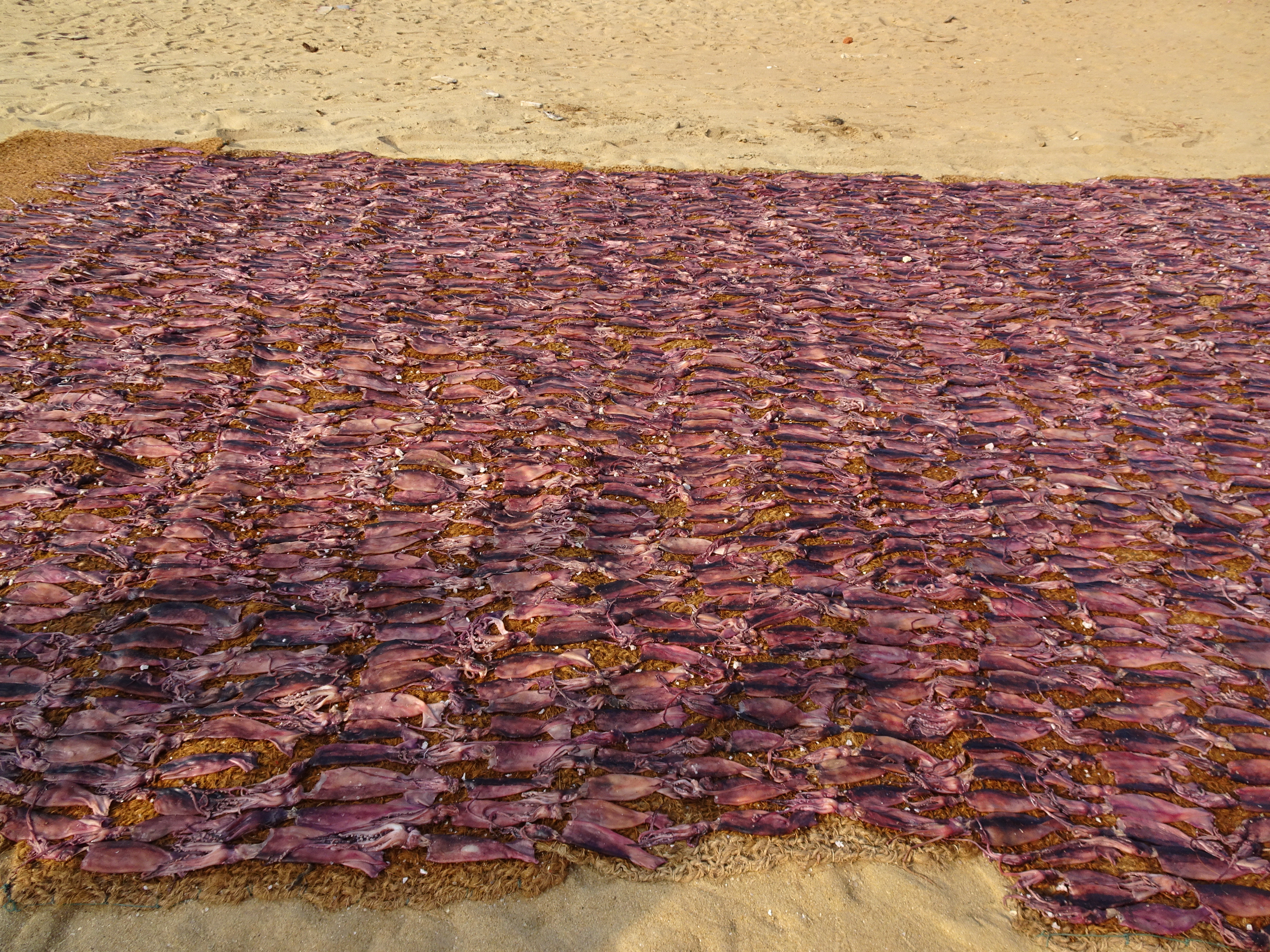 Squid drying on the beach in Negombo